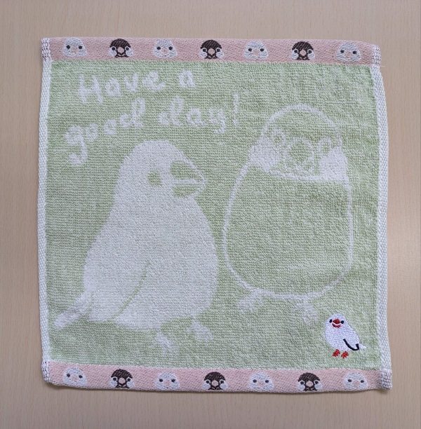 ジャガード ミニタオル 文鳥 グリーン
